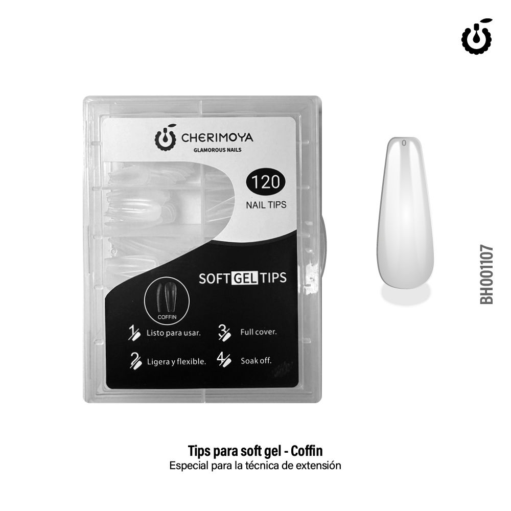 Tips Soft Gel Cherimoya x120 Coffin Largo Prelimado